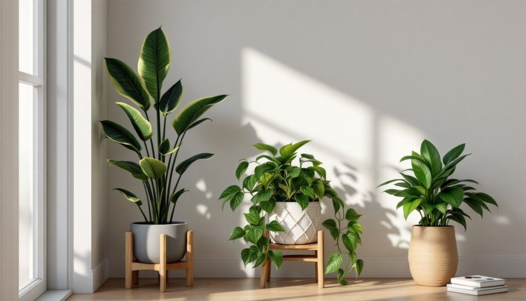 Hallways and entryways: These spaces often lack windows but get ambient light from adjacent rooms. A snake plant or ZZ plant in a corner adds greenery without demanding sunlight. If the hallway has a skylight or a window at one end, position plants within 10 feet for best results.