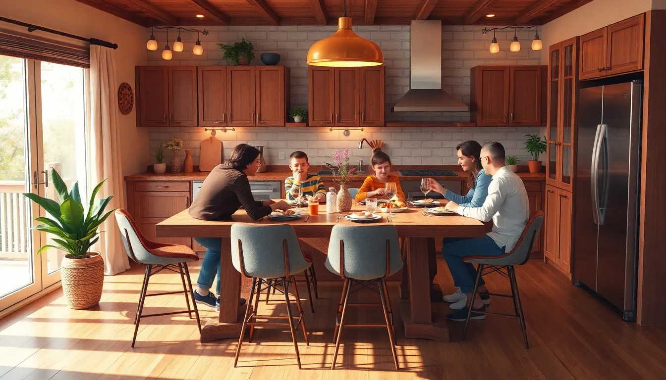 Functionality ensures a seamless dining experience. Sufficient counter space allows for meal preparation and serving without crowding. Storage solutions like cabinets and shelves keep necessities organized and accessible. Comfort becomes essential, especially during long gatherings. Ergonomic seating improves posture and encourages longer family dinners or brunches. Integrating technology, such as smart appliances, simplifies cooking and cleanup. Features like sound systems elevate the ambiance, making every gathering memorable. Everyone enjoys sharing meals in a space that balances ease and comfort, inviting everyone to connect.