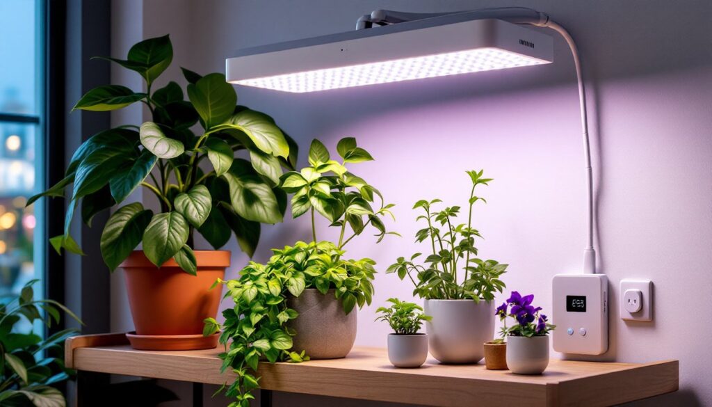 Start by assessing plant requirements. High-light plants (citrus, peppers, tomatoes, most succulents) need full-spectrum LEDs with at least 400–600 µmol/m²/s PAR. Medium-light plants (most tropical foliage, herbs, African violets) thrive under 200–400 µmol/m²/s. Low-light species (pothos, snake plants, ZZ plants) can manage with less, but even they benefit from supplemental light in dim rooms.